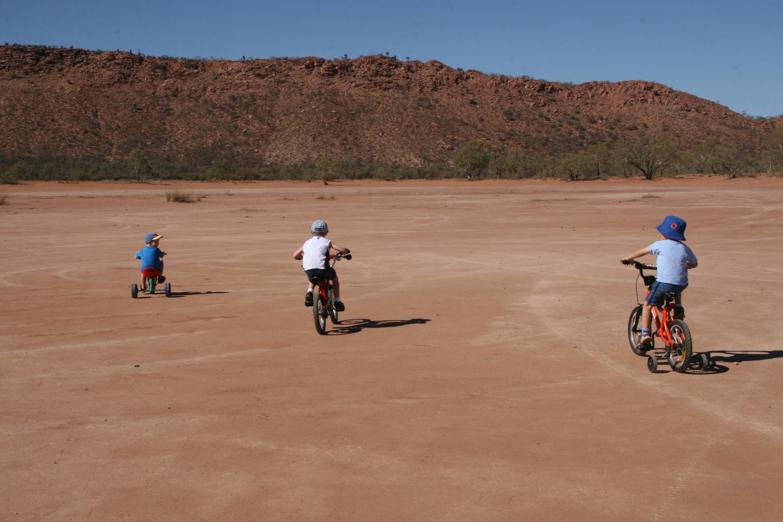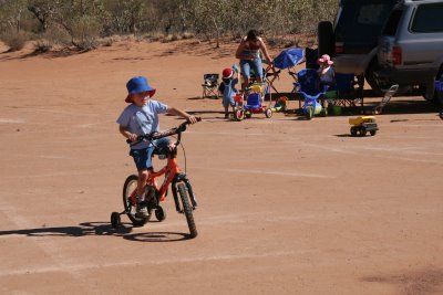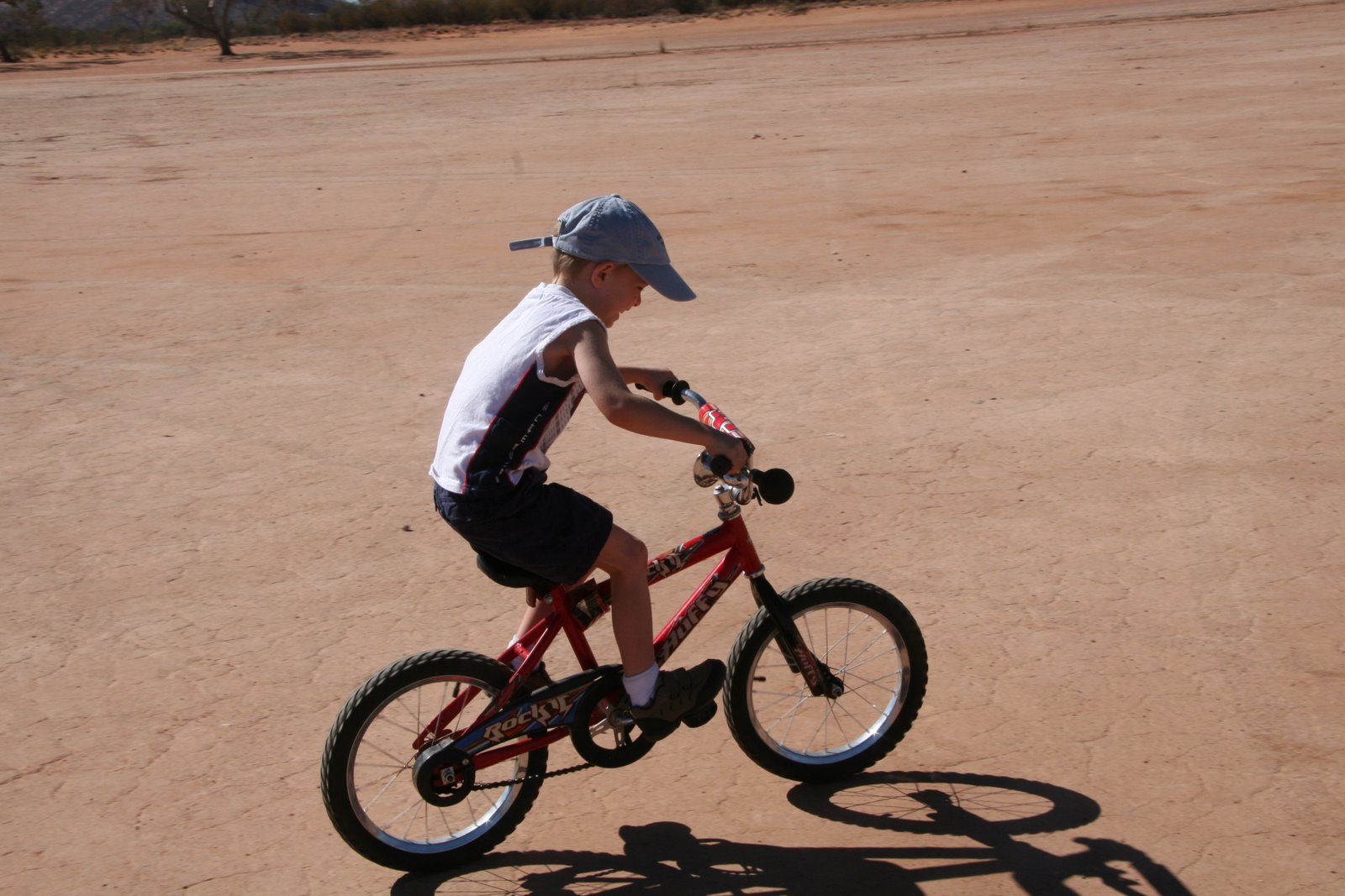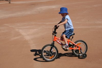 Logan is on the orange bike with training wheels. Bradon is on the red bike. Seth is on the tricycle in the last picture.