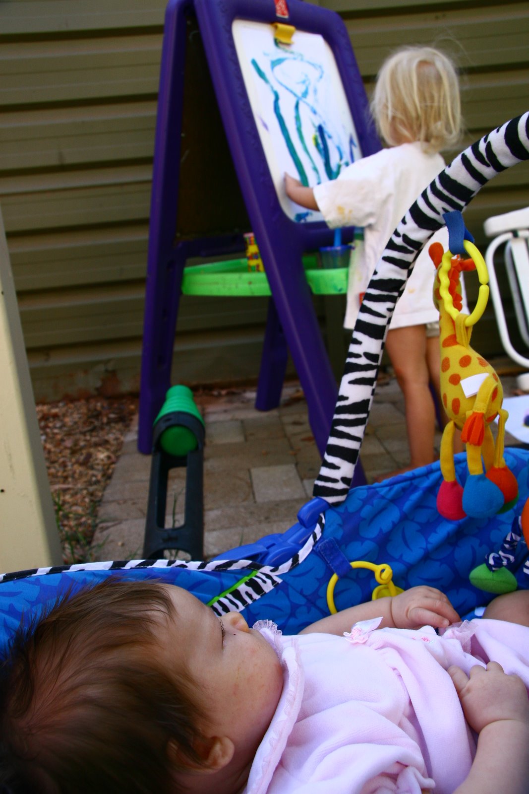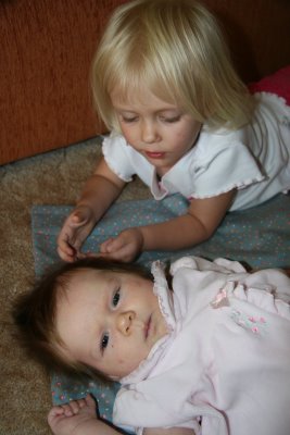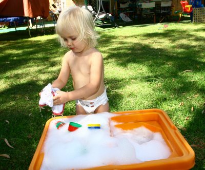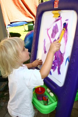 Last Monday Logan had a fever of 103.4. Delenn, Elora and I hung out all morning while Logan slept. Delenn truly enjoyed painting as she painted for over an hour and did 14 masterpieces. Elora looked on in her chair. Afterwards Delenn washed dishes at the water table (and got off all the paint too!)