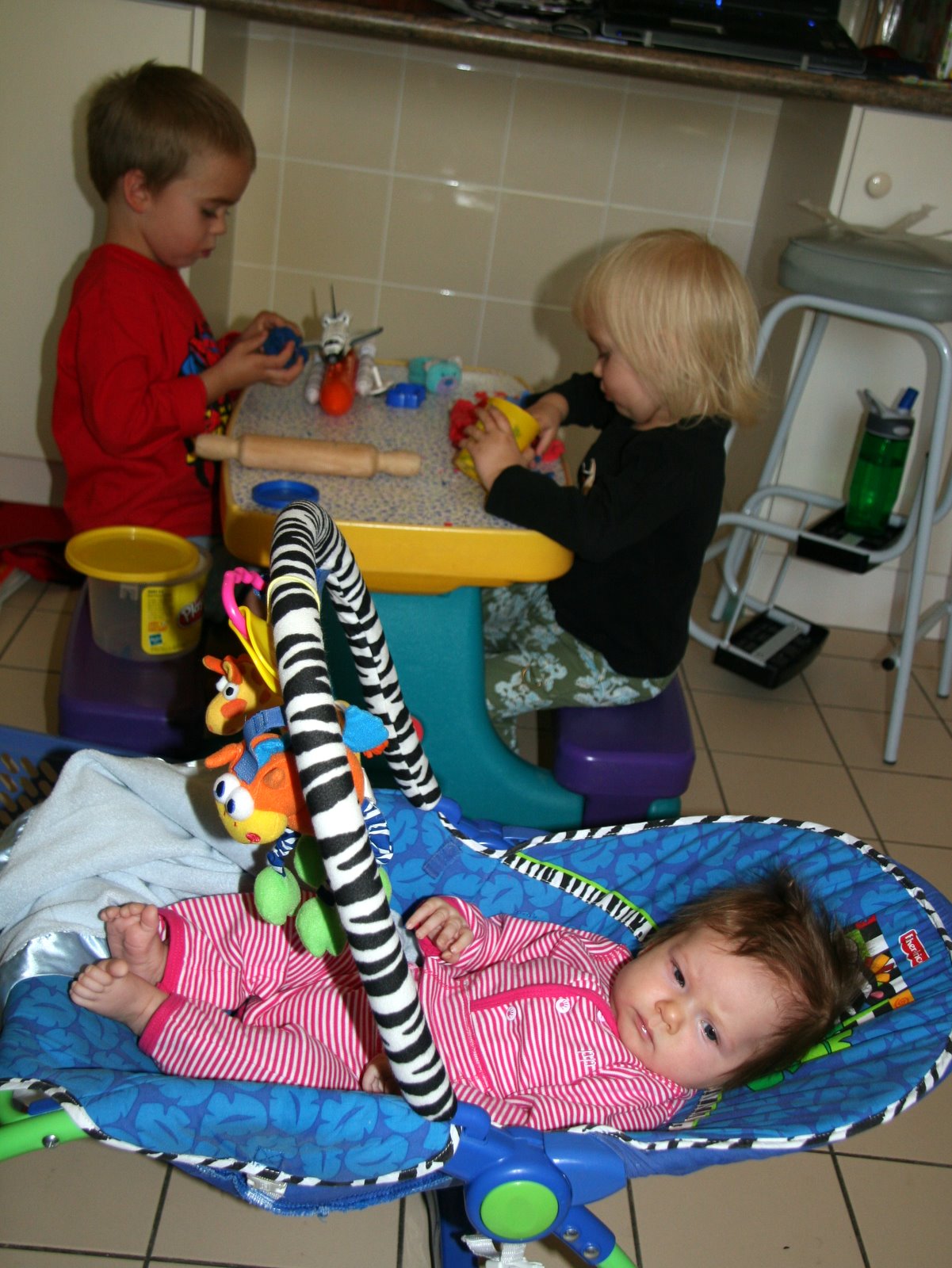 After a lovely play with friends this morning here at the house, the kids spent time making things with Play Dough while Mom cleaned up.