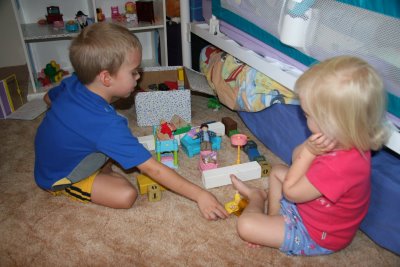 doll house, but Logan decided he wanted to play as well. Here we've