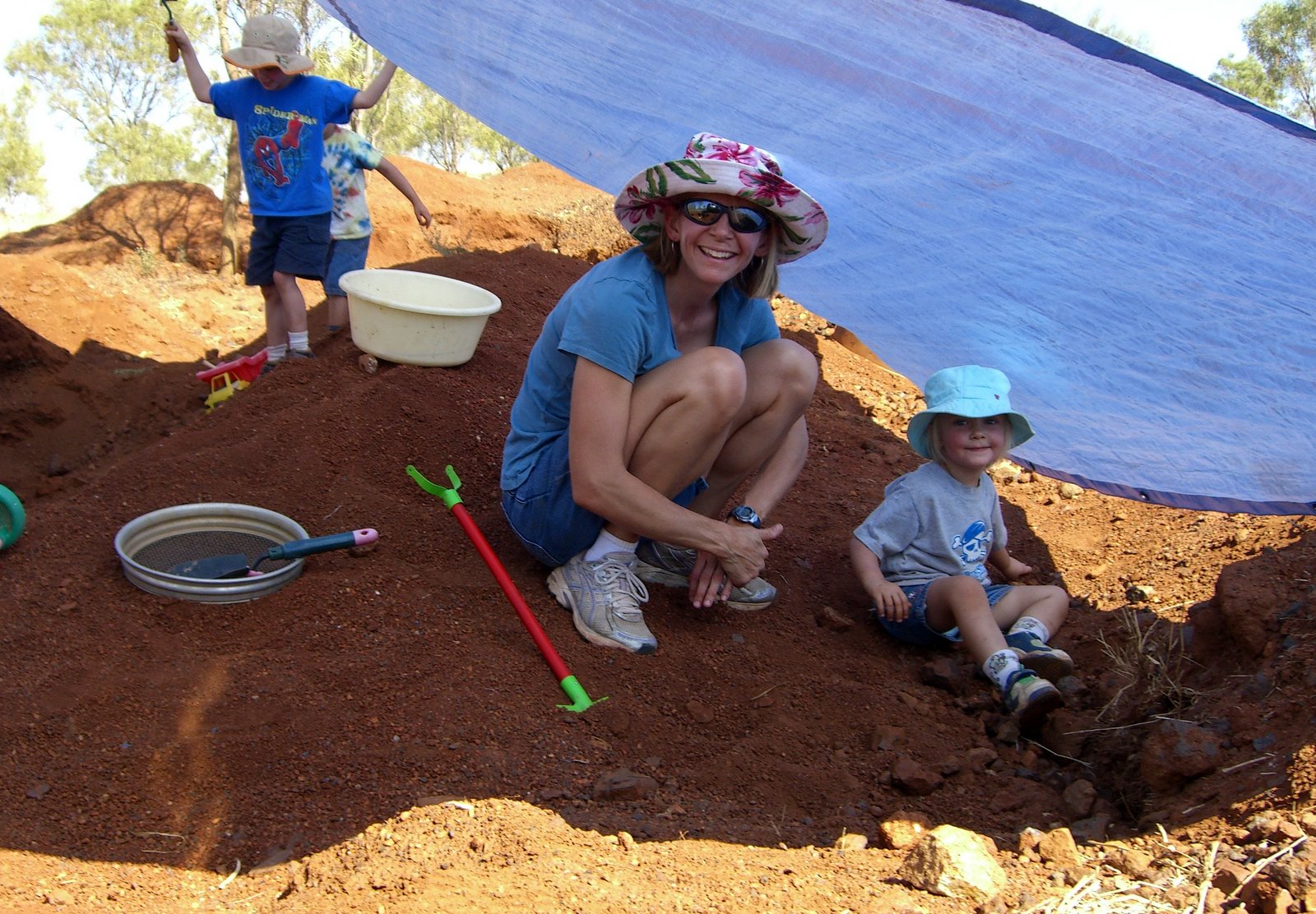 - Daddy sorts through stones with Logan and Bradon