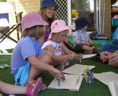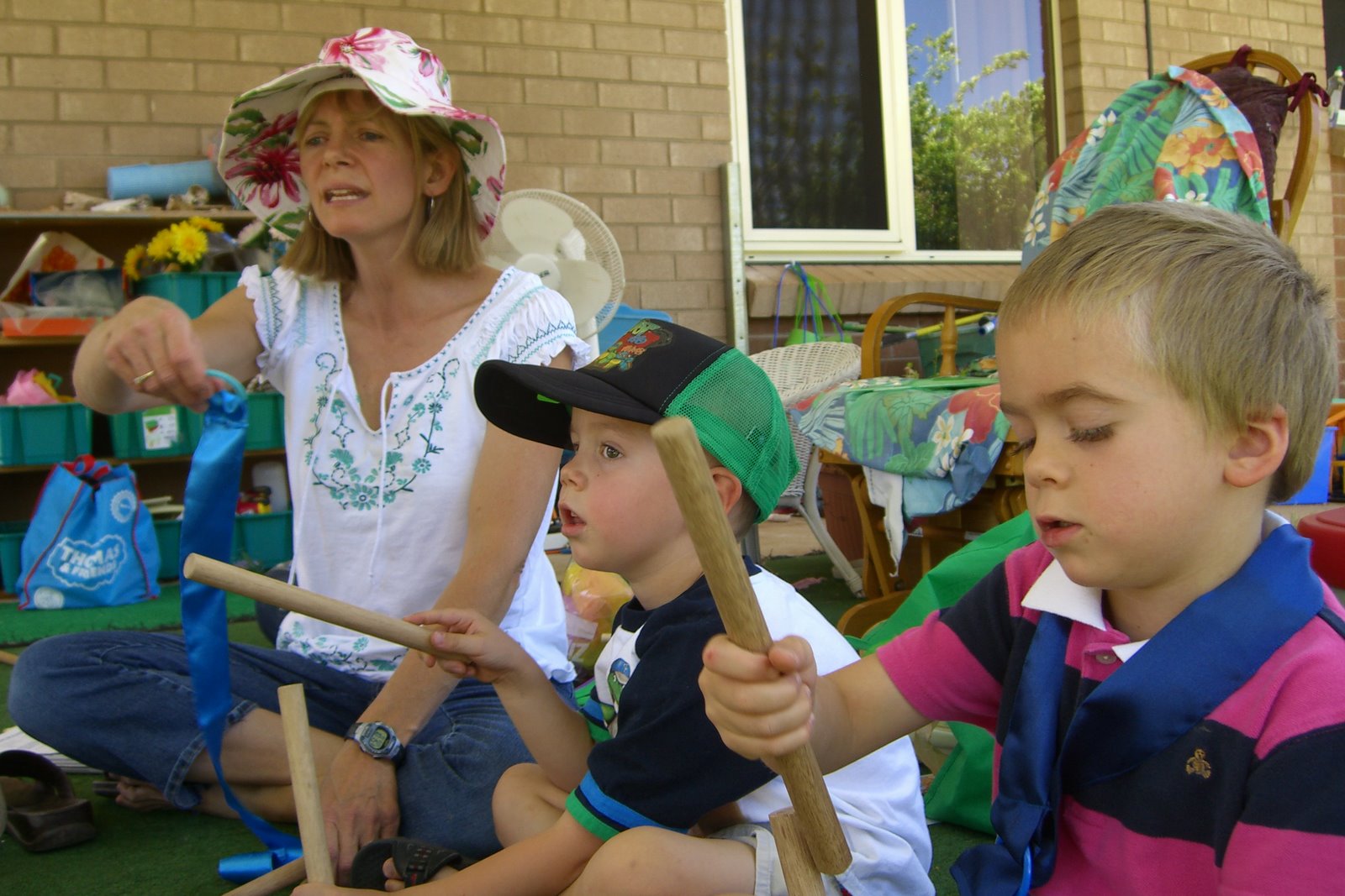 "Pitter, patter, pitter I can hear the Rain" -- first they drew pictures of the rain and wind, then they used the rhythm sticks and ribbons to make the rain and wind.