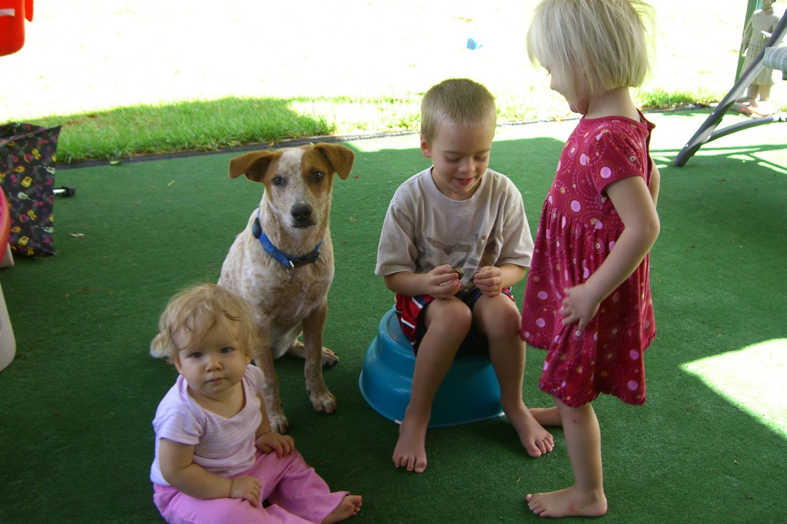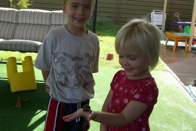 Logan put the snail into a plastic bin for safe keeping. Boomer