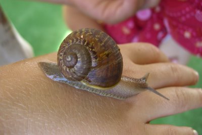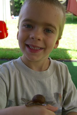 This morning, Logan found a snail in our yard. It's an unusual
