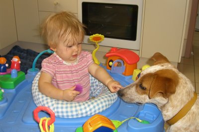 - Having fun on the tag-along bike