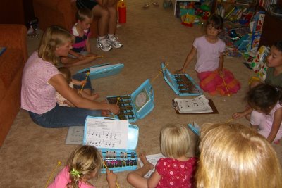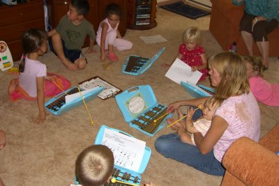 - Playing the glockenspiel in Kindermusik