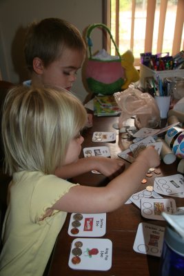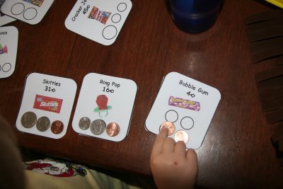 Money Sorting: Logan has been working with American coins. This is a great game I came across called the Candy Store. Unfortunately I can't remember where I got it, but if I come across it, I'll try to add in the link.