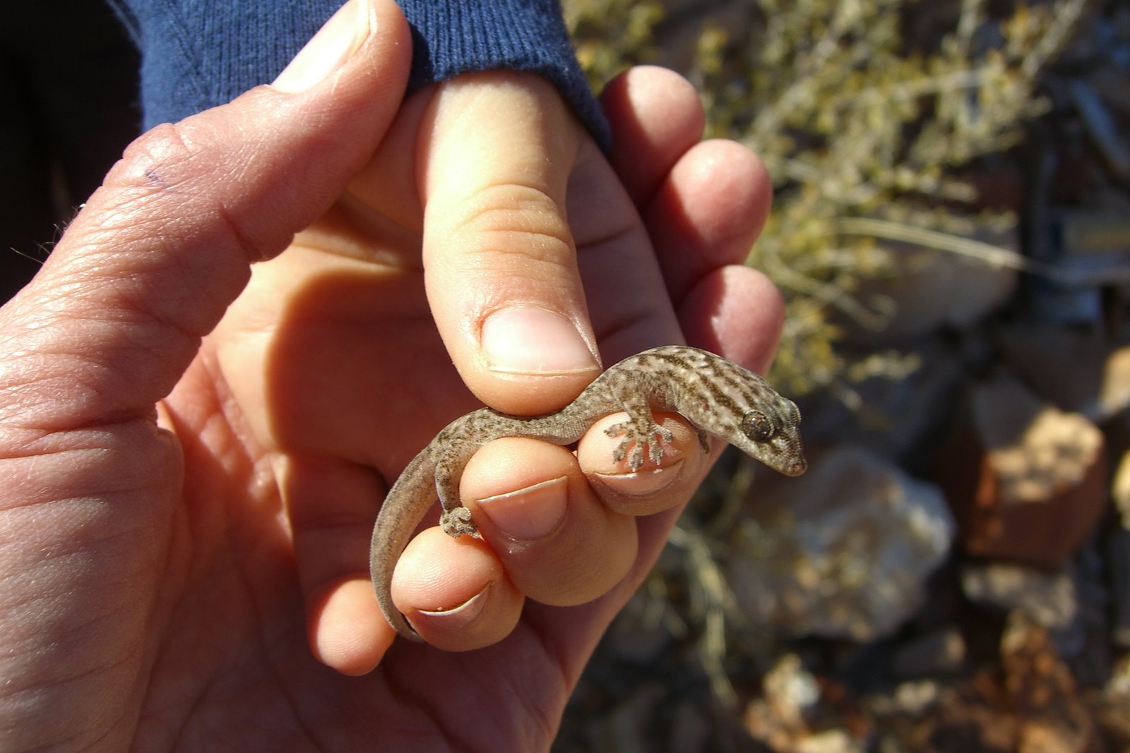 Logan found a gecko and wanted his picture taken with it.