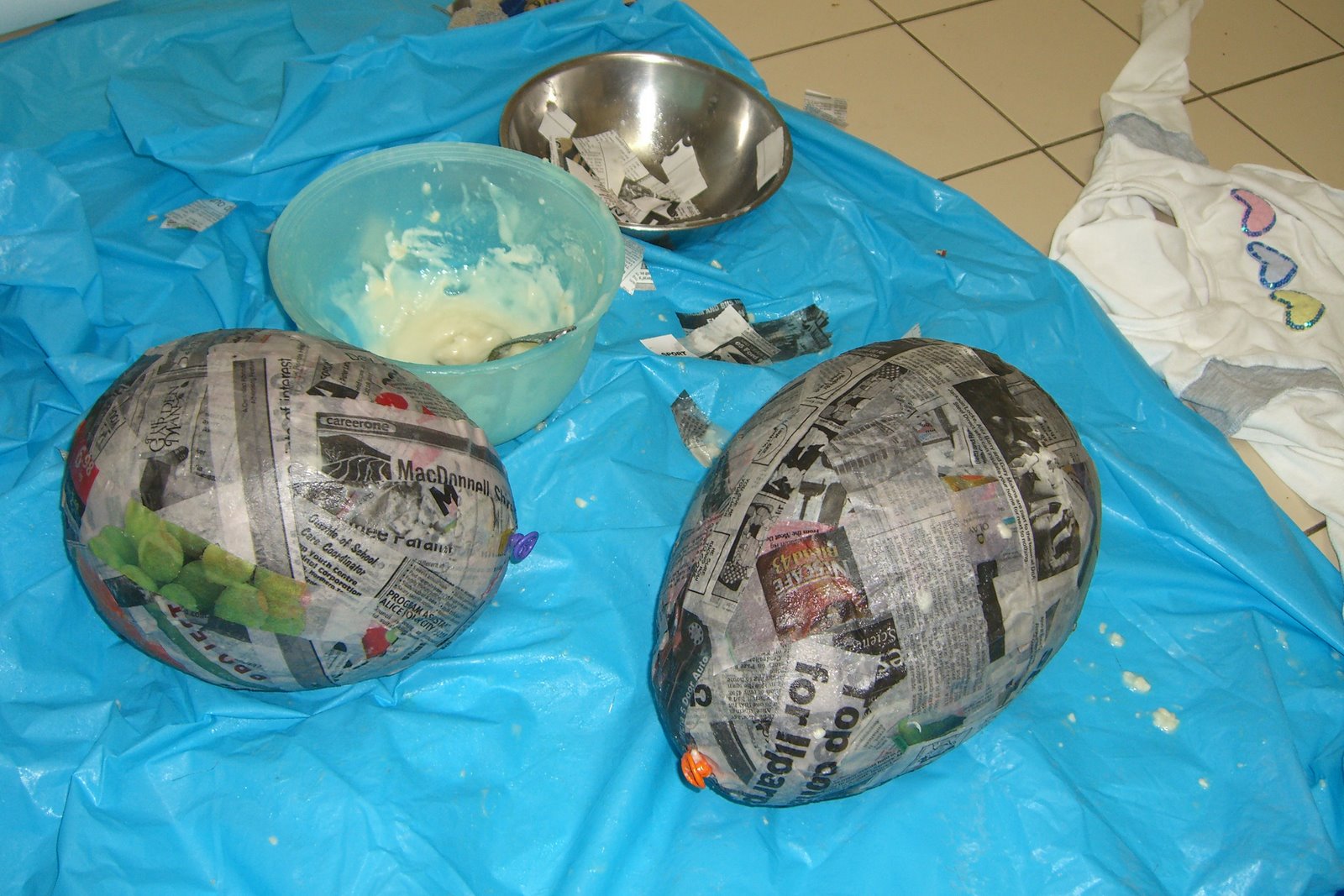 We covered balloons with paper mache. Logan made a Scooby