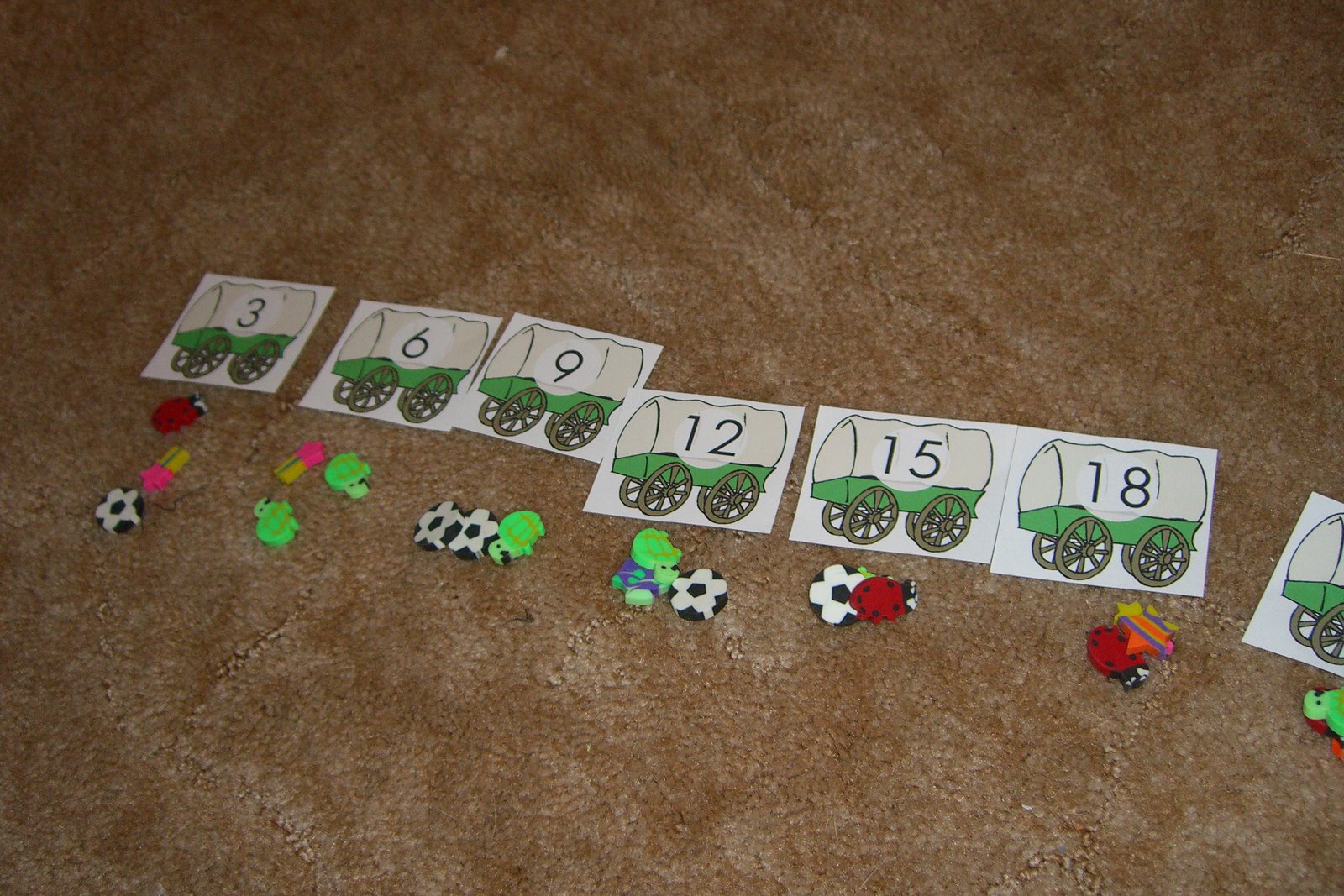 so forth. (skip counting wagons: http://filefolderfun.com/FirstGradeMath.html)